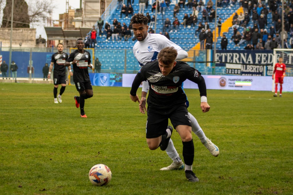 Pareggio incredibile quello tra Brindisi e Francavilla, maturato al 92’ dopo una gara rica di occasioni. Prima occasione della gara al 4’, quando da rimessa laterale la sfera rimane nell’area francavillese. Nessuno, però, riesce a impattare sulla sfera che viene allontanata. Marko Rajkovic in quell’azione è caduto a terra. Secondo l’arbitro, però, non c’è stato alcun contatto. La punta serba, però, si è accasciato per un problema alla caviglia poco dopo, facendo preoccupare i tifosi biancazzurri. Tiro di Nikita Martinenko al 9’ da buona posizione, deviato in corner. Tira anche Fabrizio Incerti al 16’, ma Leonards Cevers riesce a deviare in angolo. Ammonito Pierluigi Pinto al 27’, per un fallo su Rajkovic al limite dell’area. Dopo circa 15’ abbastanza piatti, Franco Sosa al 42’ si ritrova il pallone tra i piedi in area. La punta, incredibilmente, spedisce alta la sfera. Il primo tempo si è quindi concluso senza ulteriori azioni degne di nota. Il secondo tempo è iniziato con l’ingresso in campo di Marko Maletic, al posto di Eneo Gjonaj. Primo brivido al 52’. Saverio Dellino colpisce al volo sulla respinta di Cevers da ottima posizione, ma il suo tiro finisce clamorosamente fuori di molto. Dentro Lorenzo Costantino al 52’, al posto di Pinto. Segna Dellino al 55’ facendo esplodere il Fanuzzi, ma l’arbitro ravvisa un giusto tocco di mano di Rajkovic: nulla di fatto. Ammonito Ceesay al 59’, dopo l’ennesimo fallo. Spazio anche per Gianmarco Baglivo al 68’, al posto di Ceesay. Messo giù Martinenko al 73’ all’interno dell’area: è rigore. A trasformarlo in rete il solito Rajkovic, che confonde Cevers che si tuffa dall’altra parte. Ammonito capitan Nicola Lanzolla al 77’. Dentro Felix Ledesma al 78’, esce Luis Hernaìz. Parata super di Cevers che salva un gol già fatto all’80’, parando un gran tiro di Rajkovic. Dentro Momar Diop all’83’, al posto di Nicola Pinto. Spazio per Mattia Latagliata all’85’, al posto di Marco Albano. Primo cambio della gara per il Brindisi all’86’: esce Dellino, entra Mircea Manole. Errore clamoroso di Martinenko al 92’ che, al limite dell’area, consegna la sfera a Sosa che, con un bel tiro a giro, beffa Federico Mataloni, regalando un pareggio insperato ai suoi.