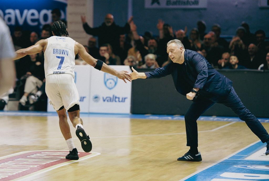 risultato finale di 91-78. Top scorer fu Allen, autore di 22 punti, mentre il miglior Robinson della stagione ne realizzò 21; Vildera e Marini toccarono quota 17 punti personali. Nel match di ritorno al PalaPentassuglia del 29 gennaio 2025, la Valtur travolse come un fiume in piena gli ospiti con uno scarto di 35 punti, 90-55 il punteggio finale. Mattatore dell’incontro Brown, all’esordio al PalaPentassuglia con 19 punti a referto, grande prova anche di Del Cadia da 24 di valutazione, la più alta dell’incontro, frutto di 15 punti e